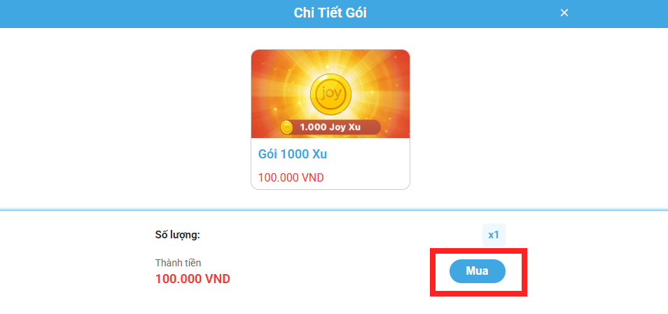 Muốn thanh toán vào Ingame hoặc mua các gói Sự Kiện Web bằng Ví JOY, đầu tiên HLV hãy nạp XU vào Ví.