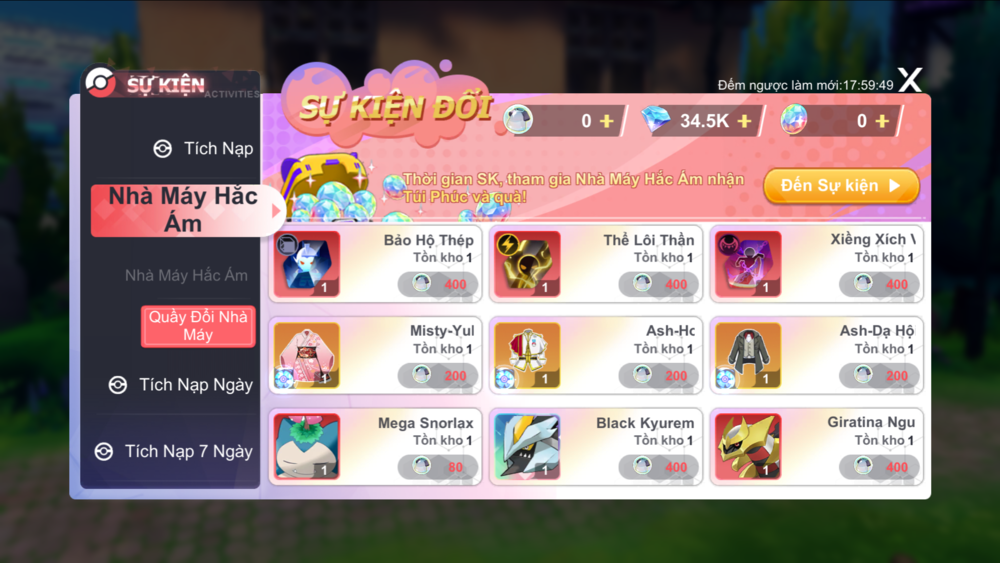 - Vật phẩm Hạn Giờ: Tinh Hoa Vật Liệu (Nhận trong sự kiện Nhà Máy hoặc mua Gói Quà Nhà Máy)