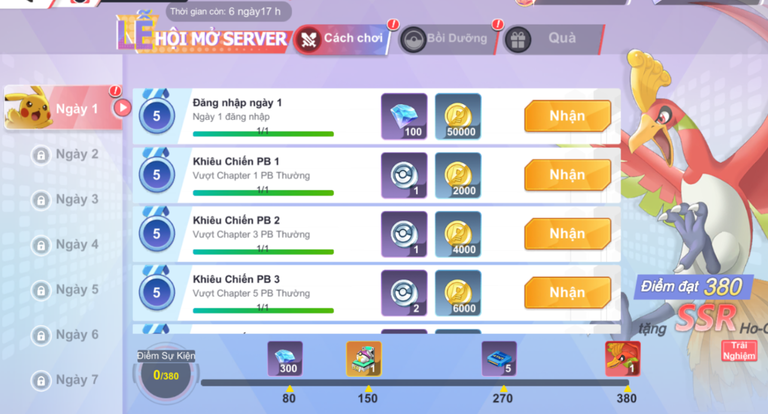 - Sự kiện diễn ra trong 14 ngày chia làm 2 giai đoạn, HLV hoàn thành các nhiệm vụ để nhận quà và Điểm Sự Kiện, đặc biệt khi Điểm Sự Kiện đạt mốc cao nhất sẽ nhận Pokémon Ho-Oh SSR quý hiếm.