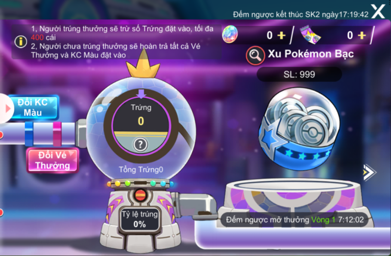 - Người chơi chưa trúng thưởng, sau khi SK kết thúc, hoàn trả tất cả Vé Thưởng và KC Màu đặt vào.