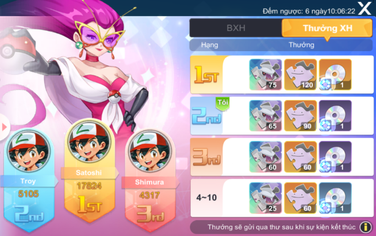 - Sự kiện đua TOP Lực Chiến chỉ diễn ra trong 7 ngày đầu mở server với các phần thưởng vô cùng giá trị như: Mảnh Palkia (SP), mảnh Ditto Tinh Anh và TM Ảnh Sát.