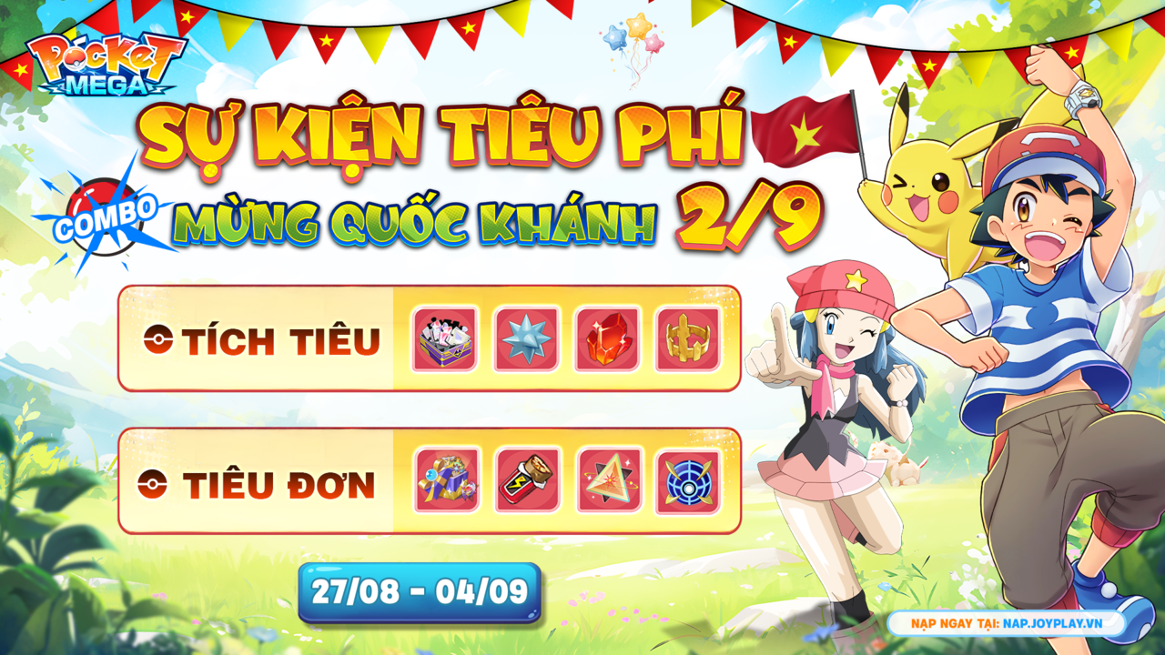 Misty xin giới thiệu chuỗi sự kiện Combo Sự Kiện Tiêu Phí - Mừng Đại Lễ Quốc Khánh chỉ có tại Pocket Mega!