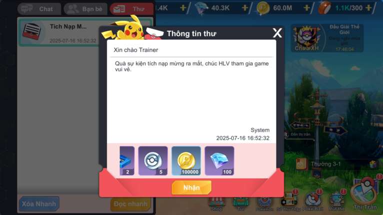 - Đối với quà Bonus, HLV kiểm tra thư ingame để nhận quà.