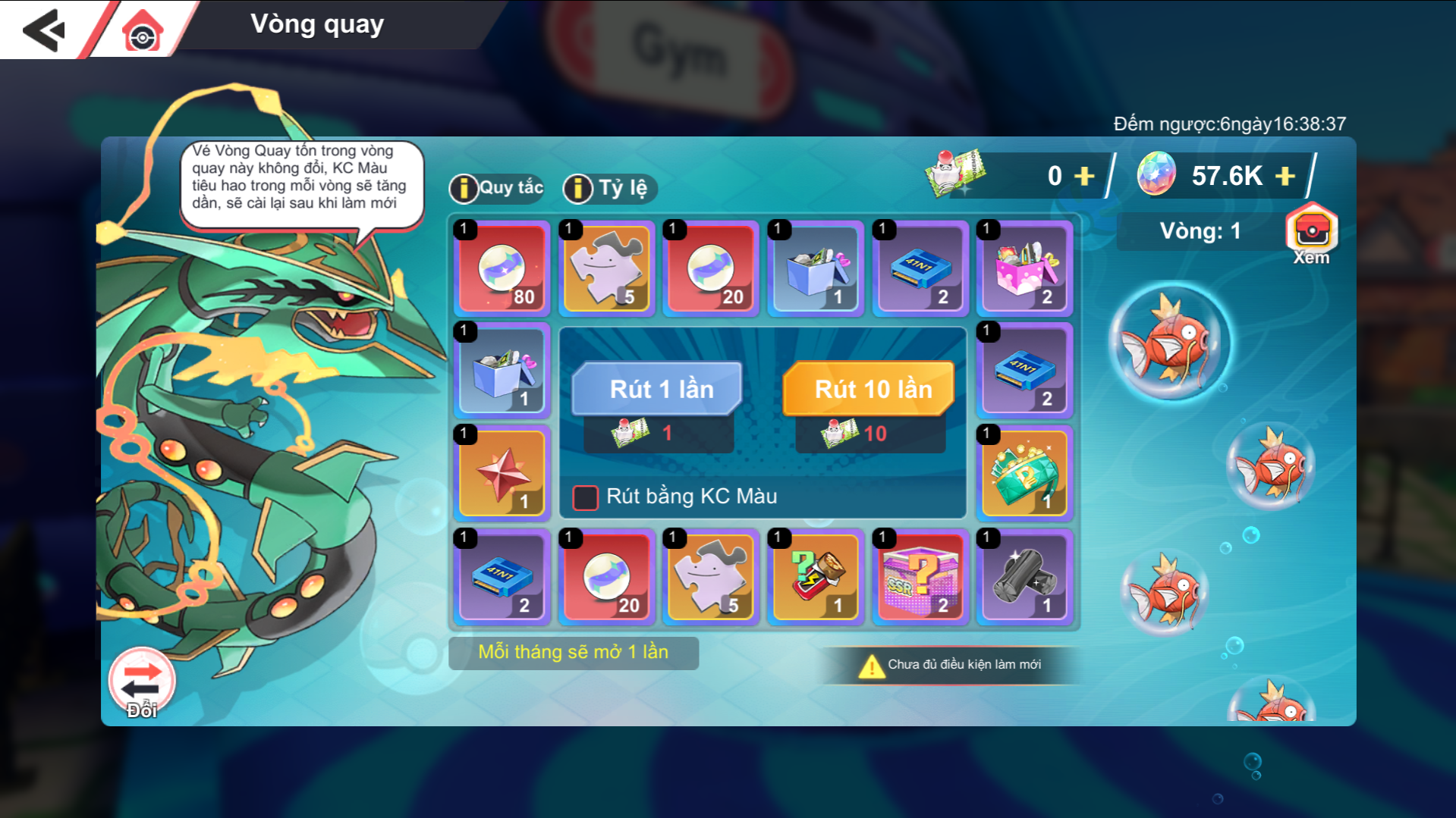 - Sử dụng KC Màu để rút, số KC Màu tiêu hao trong mỗi vòng sẽ dần tăng lên, cài lại khi làm mới vòng quay.
