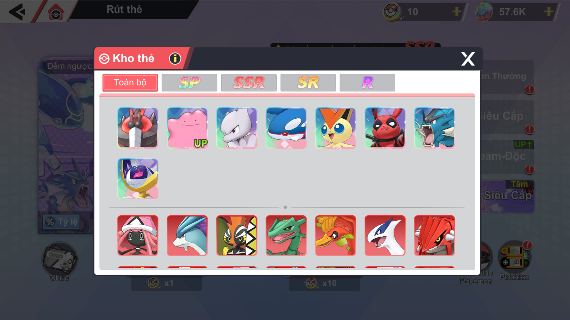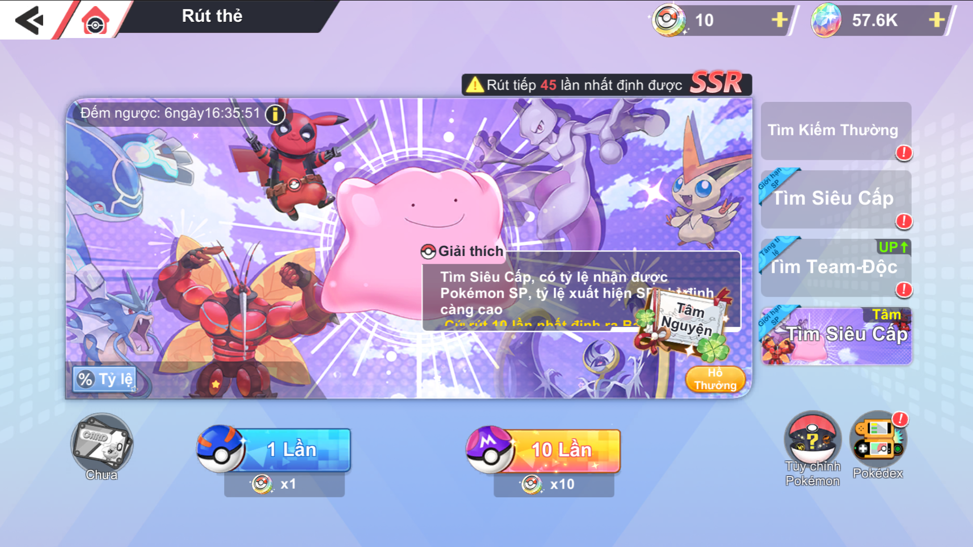 - Vật phẩm giá trị khi tham gia bao gồm: Quà Vật Liệu, Mảnh Ditto Tinh Anh, Mảnh SSR, Vé Rút Thưởng giới hạn và đặc biệt Ngọc Linh Hồn (dùng đổi Pokémon và Khung Avatar hiếm tại Quầy Đổi)