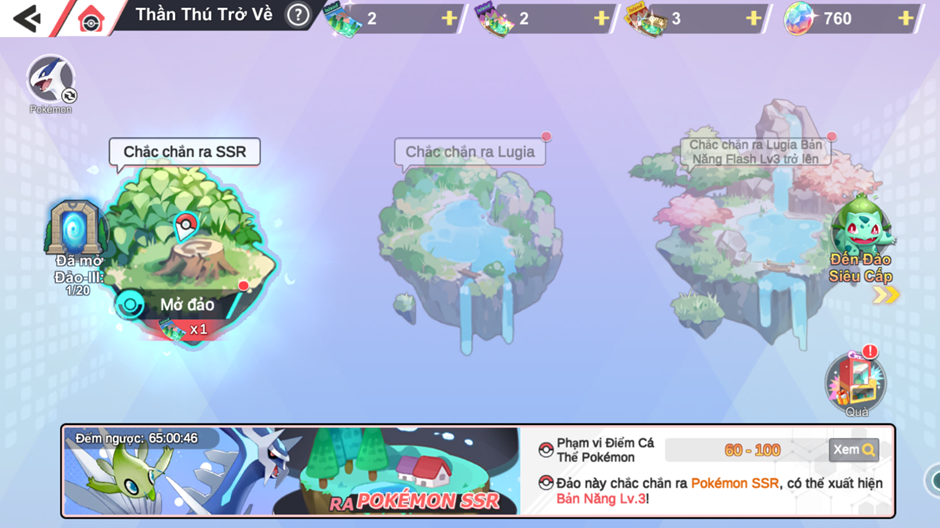 - Sau khi Trainer lên đảo, đảo sẽ tồn tại 3 giờ, Trainer bắt được toàn bộ Pokémon, hòn đảo sẽ sụp đổ
