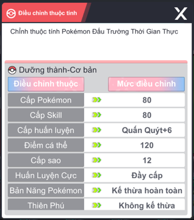 Hình ảnh một số thuộc tính Pokémon được điều chỉnh cân bằng