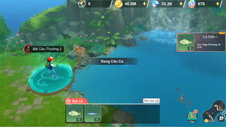 - Người chơi chọn 1 Bãi Câu, nhấp bắt đầu Câu Cá để vào trạng thái câu cá, chọn cần câu, nhấp nút thả câu để bắt đầu câu cá.