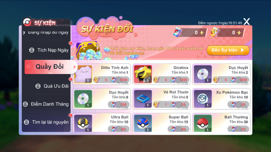 - Trong thời gian sự kiện, HLV tham gia PB có xác suất rơi Vé Đổi Pokemon!