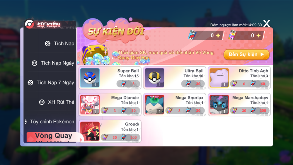 - Vật phẩm giá trị khi tham gia bao gồm: Quà Vật Liệu, Mảnh Ditto Tinh Anh, Mảnh SSR, Vé Rút Thưởng giới hạn và Túi TM.